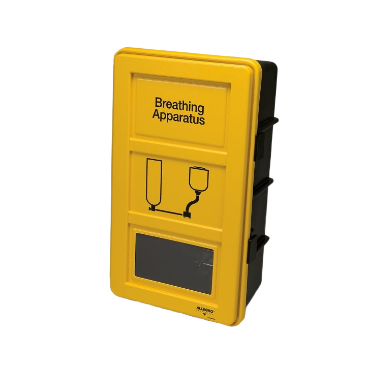 Our wall cases protect respirators against damaging plant and window environments. They are made of corrosion resistant ABS with ultraviolet inhibitors. Nonmetallic hinges and latches prevent rust while a rubber door seal protects equipment from dust and moisture. The Deluxe Case comes with shelf and single SCBA cylinder bracket. The Standard Case offers the same large capacity, without shelf or bracket.
