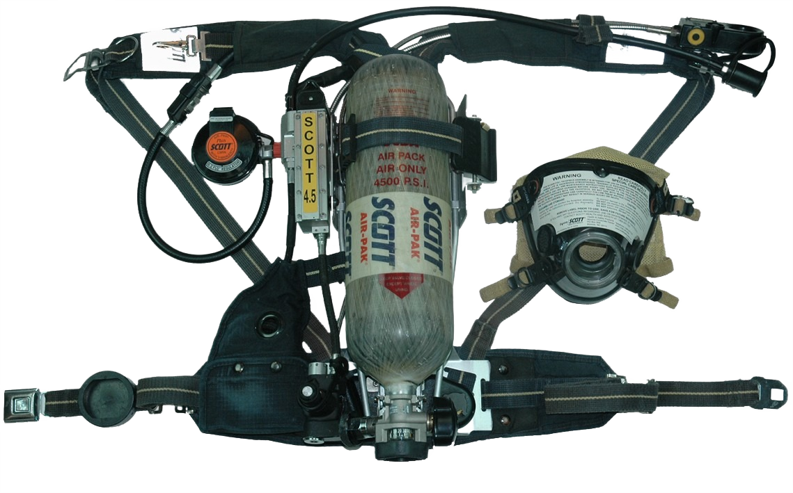 AP50 2.2 / 4.5 2007 – Scott has built this Air-Pak around a low profile, one-piece backframe. The AP50 features an ergonomic fit and includes standard padding, as well as wrap around hip wings for added comfort, and a Kevlar® harness with lumbar support system. The AV-2000 facepiece connects to a state-of-the-art face-mounted high flow regulator. The 4-point Kevlar® net-style harness provides better face piece fit. The AP50 also features a redundant first stage pressure reducer system, a strap style over-center retention band permitting easy cylinder changes and parachute-style harness fasteners to facilitate donning and doffing. The AP50 accommodates 2216 and 4500 psi 30, 45 or 60 minute duration SCBA cylinders.
