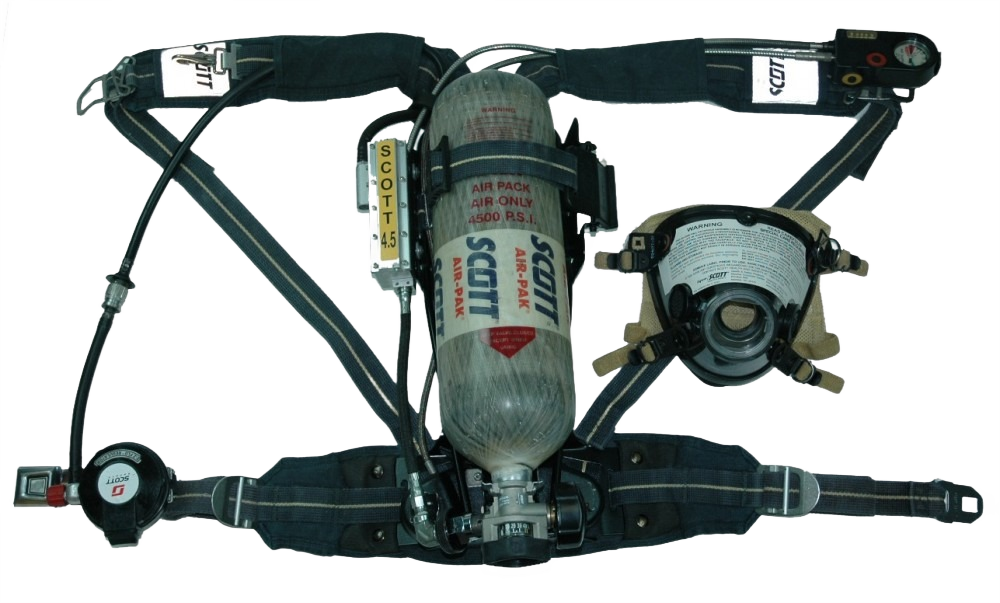 AP50 2.2 / 4.5 2002 – Scott has built this Air-Pak around a low profile, one-piece backframe. The AP50 features an ergonomic fit and includes standard padding, as well as wrap around hip wings for added comfort, and a Kevlar® harness with lumbar support system. The AV-2000 facepiece connects to a state-of-the-art face-mounted high flow regulator. The 4-point Kevlar® net-style harness provides better face piece fit. The AP50 also features a redundant first stage pressure reducer system, a strap style over-center retention band permitting easy cylinder changes and parachute-style harness fasteners to facilitate donning and doffing. The AP50 accommodates 2216 and 4500 psi 30, 45 or 60 minute duration SCBA cylinders.